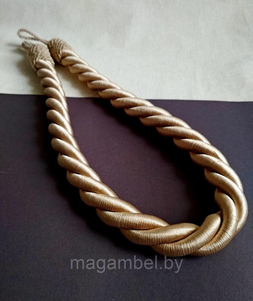 Витой подхват для штор и гардин бежевого теплого цвета.Толщина 2.2 см.,обхват 80см. Состав 100% ПЭ.