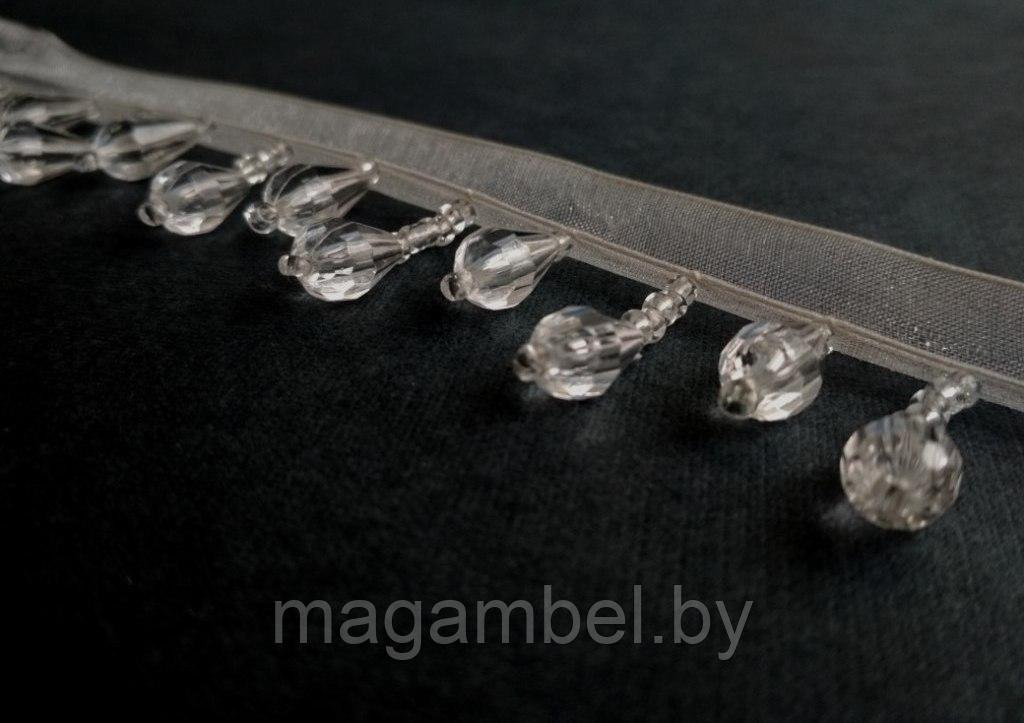 Бахрома для штор со стеклярусом белого цвета на ленте из органзы. Высота "висюлек" - 2,7 см.
