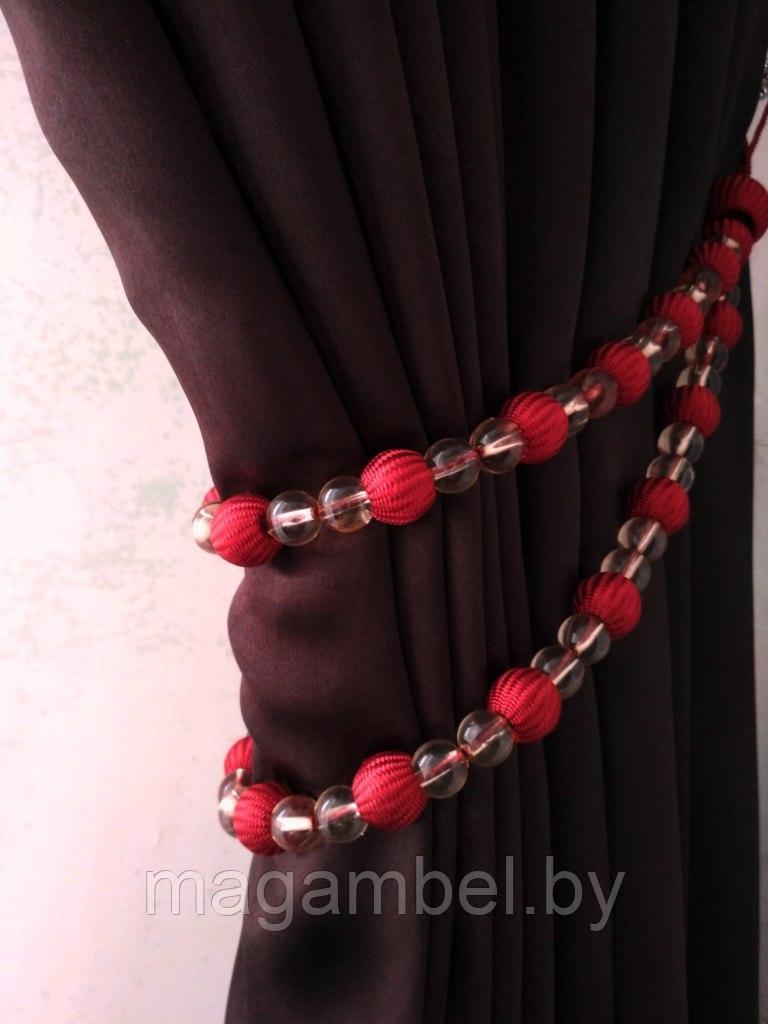 Бордовый подхват для штор и гардин. Его прелесть в том, что он сочетает в себе две фактуры: стекло и плетение, которые выгодно взаимодополняют друг друга. Длина подхвата 70 см.