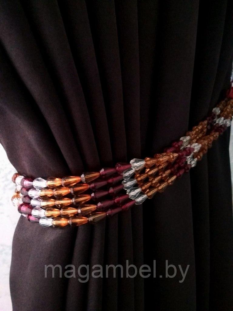 Подхват из стекляруса миксован из трех цветов: белого, золотистого и красного. Гранатовый отлив красного стекляруса дорого подчеркивается золотом и чистотой белого стекла и безусловно не потеряется в вашем интерьере. Длина подхвата 67 см.
