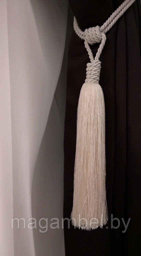 Показать оптовые ценыКисть для штор и гардин "Мэри" молочного цвета (20см).Обхват шнура 60 см.