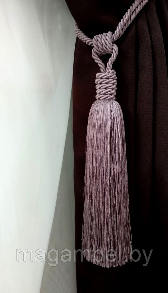 Показать оптовые ценыКисть для штор и гардин "Мэри" светло - сиреневого цвета (20см).Обхват шнура 60 см.