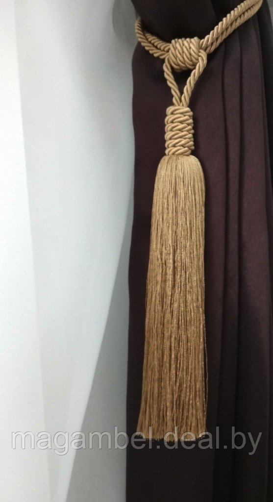 Показать оптовые ценыКисть для штор и гардин "Мэри" золотистого цвета (20см).Обхват шнура 60 см.
