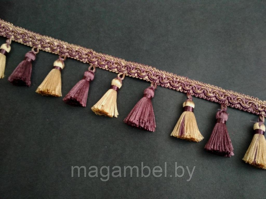 Бахрома декоративная для штор золотисто - сиреневого цвета 6 см. Состав 100% ПЭ.