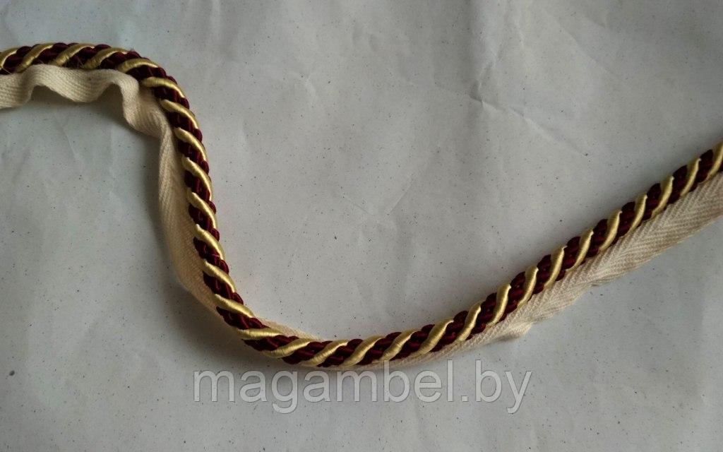 Показать оптовые ценыШнур декоративный в золотисто - бордовом цвете толщиной 1 см с "ресничкой" для пришивания. Состав 100% ПЭ.
