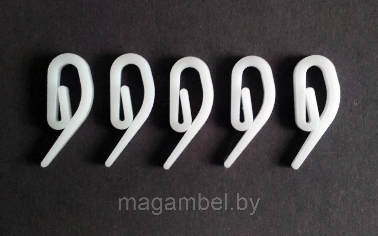 Крючок " улитка" для навешивания портьер и гардин на на все виды потолочных алюминиевых карнизов. Высота крючка 2,5 см, выполнен из пластика. Цена за упаковку, в упаковке 100 шт.
