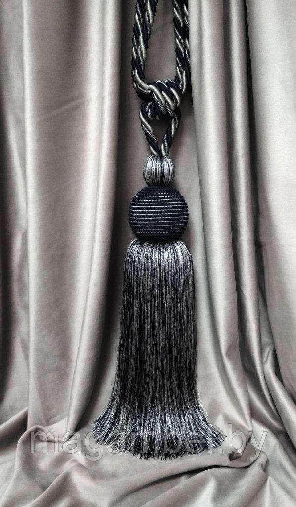 Показать оптовые ценыКисть для штор и гардин в сине - бежевом цвете (34 см). Обхват шнура 70 см.