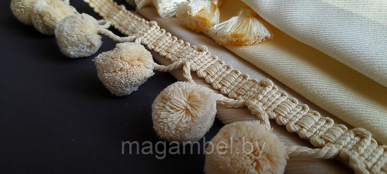Бахрома декоративная "помпоны" для штор и гардин молочного цвета 5,3 см. Диаметр шарика 3 см.