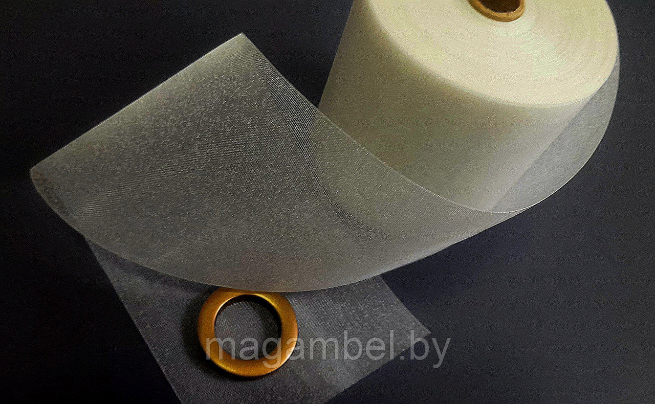 Показать оптовые ценыЛента для штор и гардин под люверсы прозрачная термоклеевая, клей нанесен с одной стороны. Высота 14 см. Состав 100% ПЭ.