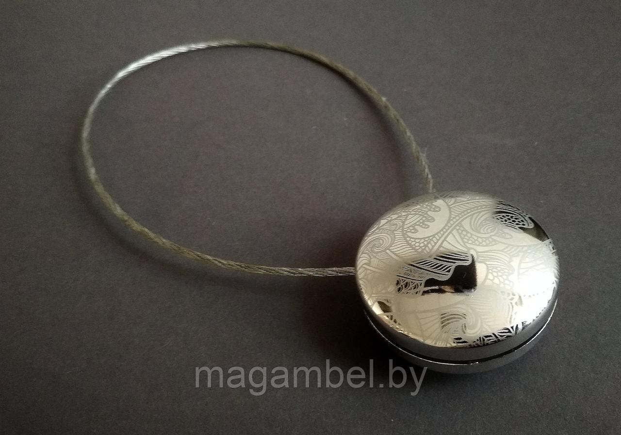 Подхват магнитный для портьер и гардин на тросе. Диаметр декора 45 мм, длина троса 24 см.