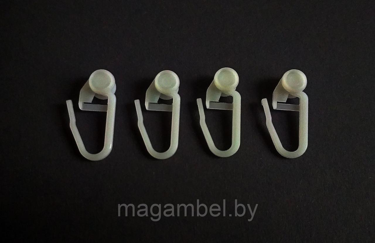 Защелкивающийся крючок для навешивания портьер и гардин на потолочный пластиковый карниз. Высота крючка 2,8 см, выполнен из пластика.