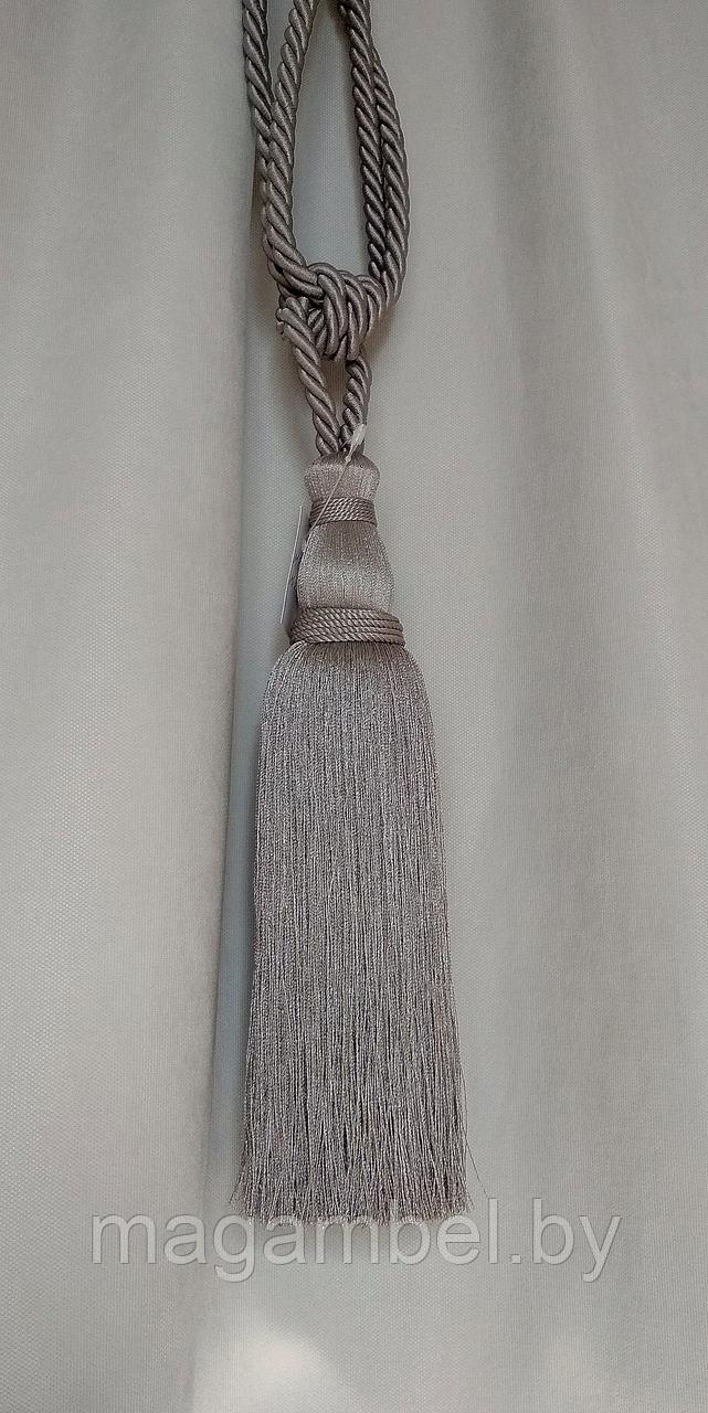 Средняя кисть для штор и гардин в серебряном цвете, классическом стиле. Длина самой кисти 28 см, подхват 35 см.