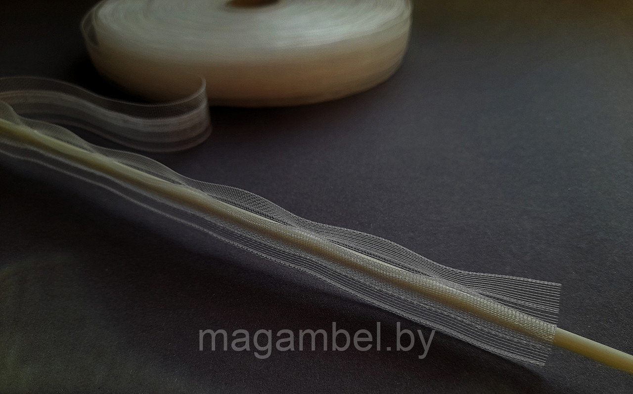 Показать оптовые ценыТоннельная лента для римских штор, которая пришивается одной строчкой Арт.9.20.003.3 (прозрачная).Высота 2 см. С карманами. Ширина тоннеля 1 см для тоненькой палочки . Состав 100% ПЭ.