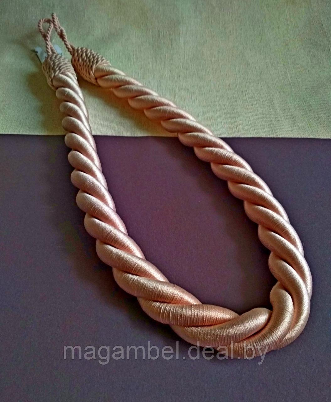 Витой подхват для штор и гардин розового цвета. Толщина 2.2 см., обхват 80см. Состав 100% ПЭ.