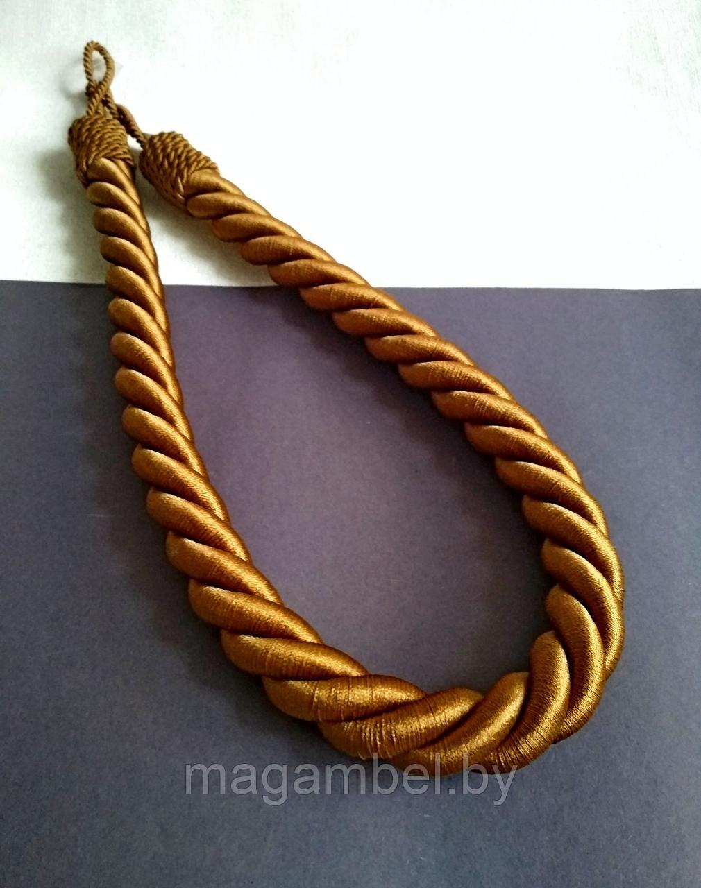 Витой подхват для штор и гардин темно - золотого цвета. Толщина 2.2 см., обхват 80см. Состав 100% ПЭ.