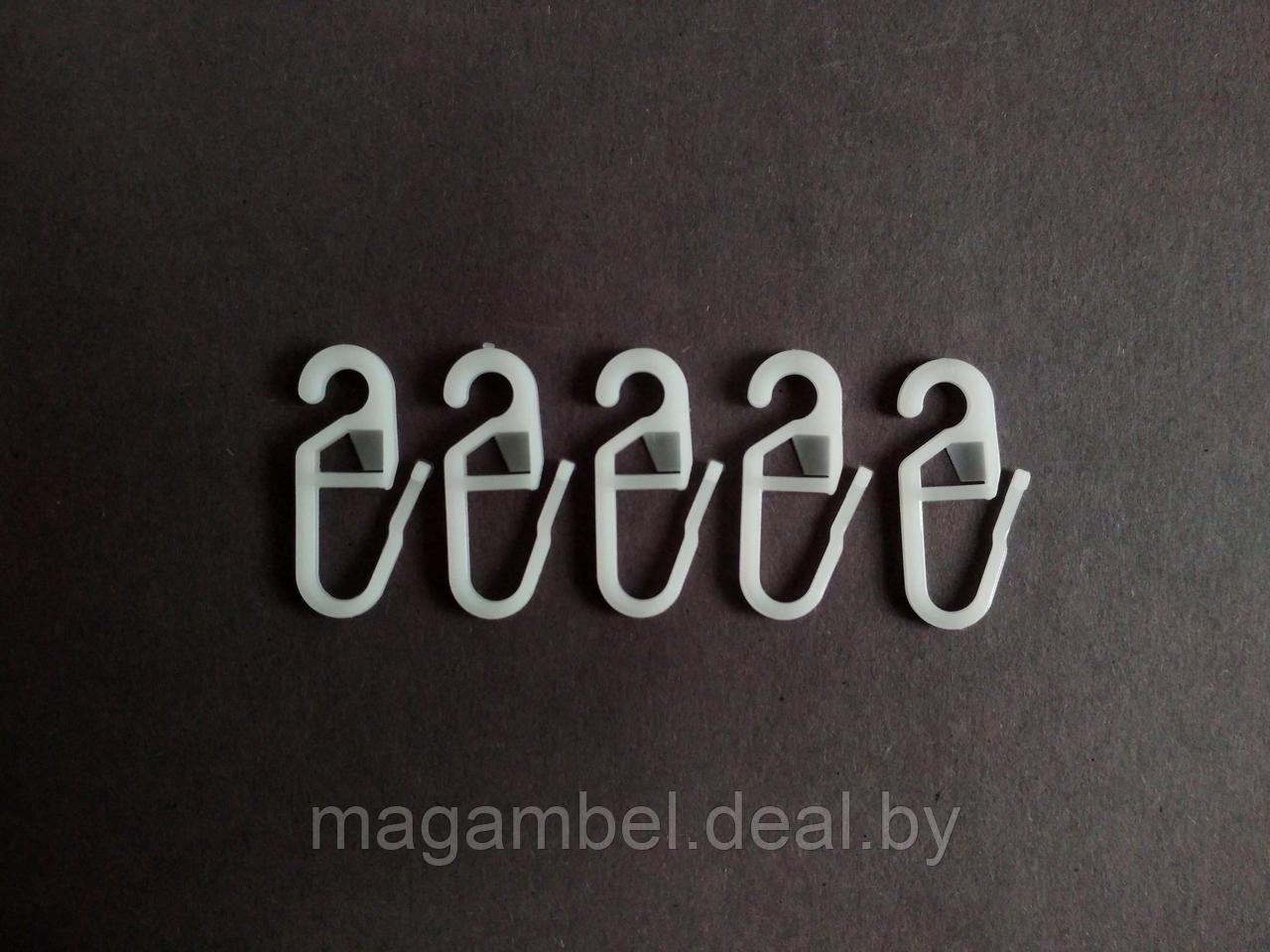 Крючок для навешивания портьер и гардин на на все виды кованных карнизов. Высота крючка 2,5 см, выполнен из пластика. Цена за упаковку, в упаковке 100 шт.