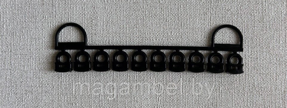 Показать оптовые ценыНабор бегунков для алюминиевого карниза черного цвета ширина 10мм, высота 14 мм, толщина 5,5 мм. Материал 100% пластик. В наборе 10 шт.