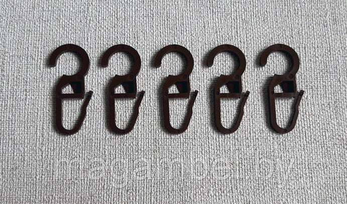 Темно - коричневый крючок для навешивания портьер и гардин на толстые кольца деревянных и иных круглых карнизов с большим диаметром трубы. Высота крючка 35 мм, выполнен из пластика. Цена за упаковку, в упаковке 50 шт.